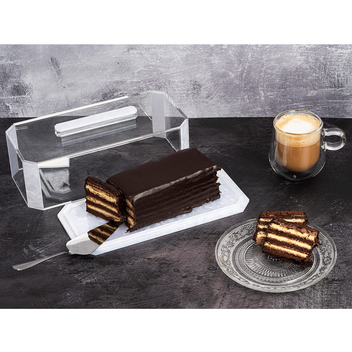 מגש עוגה עם מכסה, פנינה לבנה