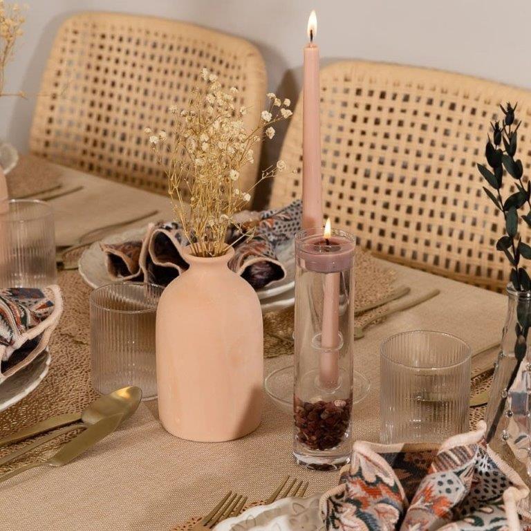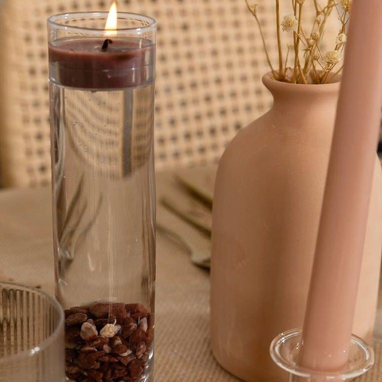 בקבוק זכוכית קטן המכיל אבנים דקורטיביות סגולות