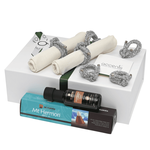 משלוח מנות | 6 חבקי מפיות ומפות בד מחברת קסה בלה, ליקר ומארז שוקולדים