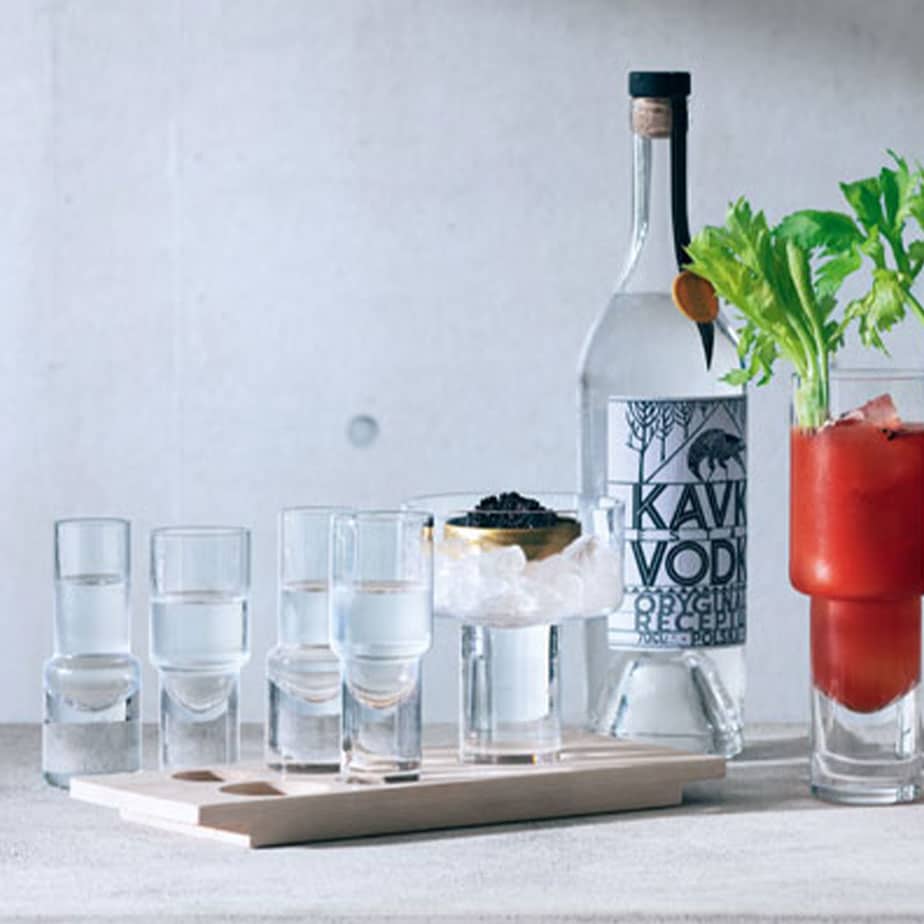 כוסות וודקה בשתי צורות גיאומטריות משלימות.