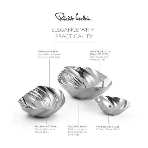 A small Cascade dish, inspired by the hypnotic movement of water. Made from the finest 18/10 stainless steel with a mirror-polished finish.