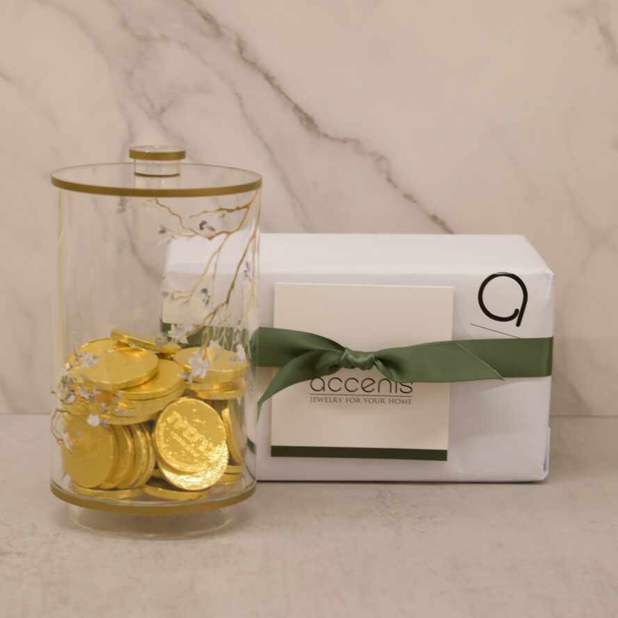 Chanukah Gift Package | Botanical Blooms Cookie Jar & Chocolate Coins