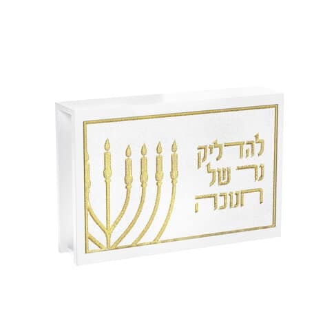 Indulge in luxury this Chanukah with this Leatherite Chanukah Matchbox by Feldart. Available in gold or silver, this matchbox holder is crafted from premium acrylic with a leather front that has been delicately embroidered. Elevate your menorah lighting this year and add an exclusive touch to your Chanukkah decor.