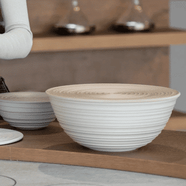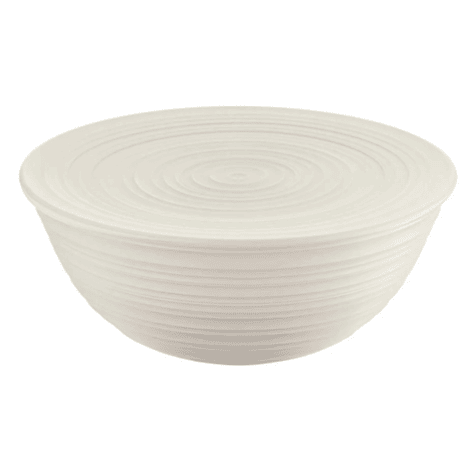 Tierra collection bowl, made entirely by recycling post-consumer water bottles, symbolizing a revolution in terms of material and style. The intentionally uneven circular decorations confer a strikingly resonant hand-made look.