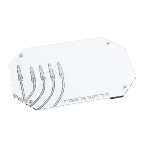 Experience the ultimate in Chanukah elegance with the Leatherite Chanukah Tray. Available in both Gold and Silver, this luxurious tray boasts a stunning design of intricately embroidered leather encased in Lucite. Elevate your Chanukah decor to new heights with this unparalleled piece.