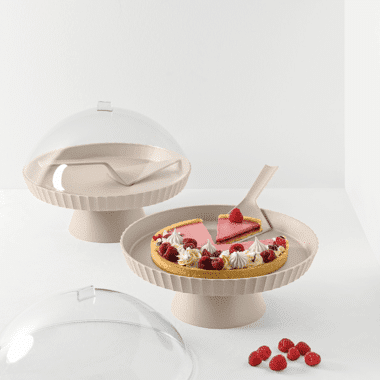 The perfect pedestal for cakes and desserts, but also cheeses and hors d’oeuvres, which will be enhanced and exalted by this cake stand. The server, which adapts perfectly to the cake stand, makes the set complete. The completely transparent freshness-saving bell protects food from humidity, so you can always enjoy desserts that are as good as freshly baked.