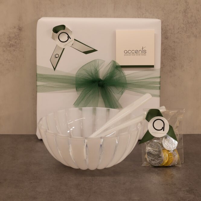 Chanukah Gift Package | Mother of Pearl Dolcevita Salad Bowl & Servers with Chocolate Coins