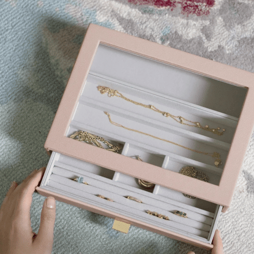 Keep your favorite jewelry safe and beautifully organized with versatile compartments for your rings, earrings, necklaces and bracelets.