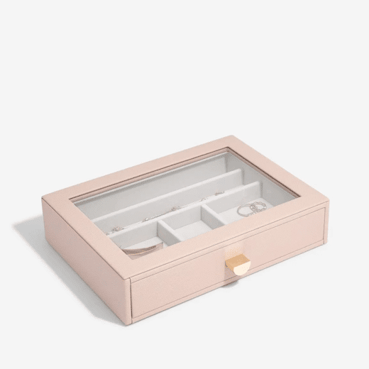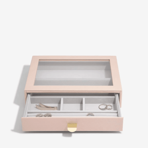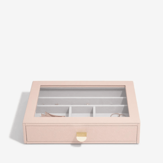 The Classic Jewelry Drawer Lid is the perfect home for your jewelry collection. Designed with a glass lid to display your jewelry beautifully, and soft velvet lining so keep your jewelry safe and protected.