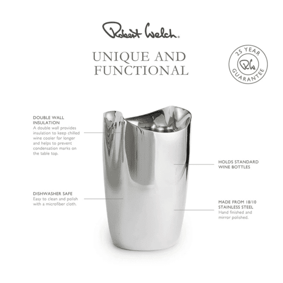 A double-walled wine cooler from the sculptured Drift range. All Drift items are made from 18/10 stainless steel with a mirror-polished finish. Part of the Drift range, all the pieces in the collection are classically proportioned making them elegant and effortless to use.