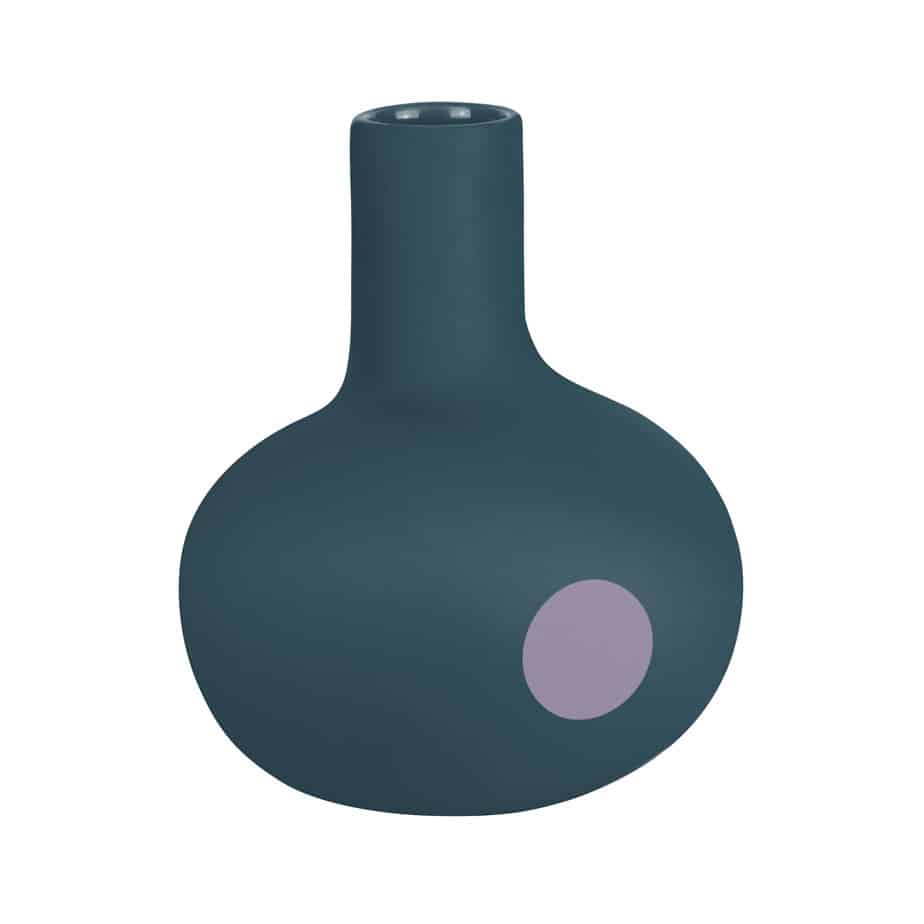 Package includes blue bud vase by Mette Ditmer with faux flower arrangement