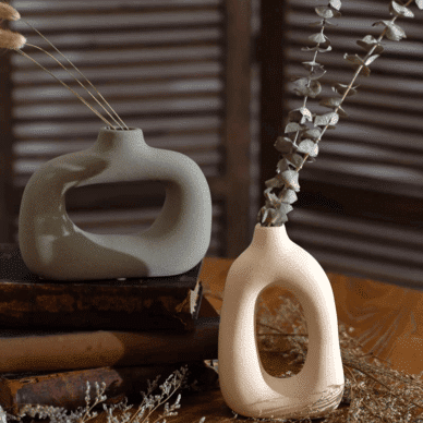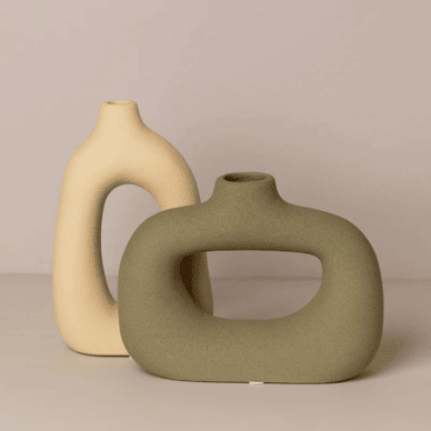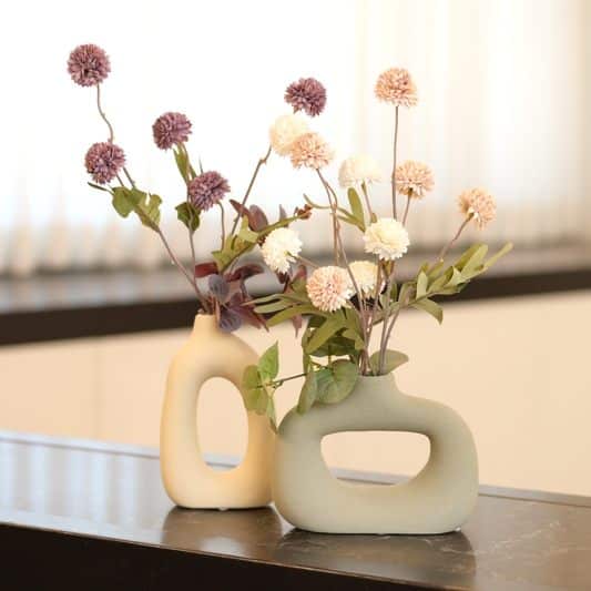 Package includes 2 geometric ring vases by Casa Bella with faux flowers.