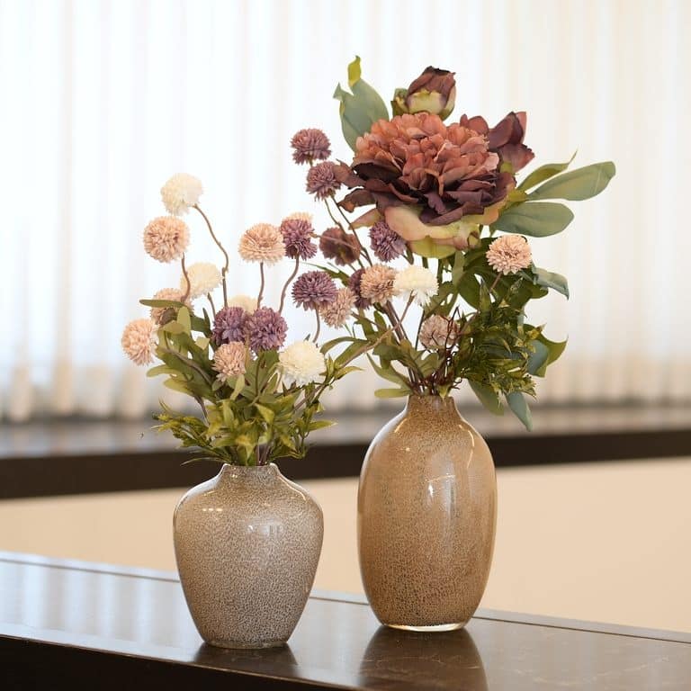 Package includes 2 vases by Casa Bella with faux flowers arrangement.