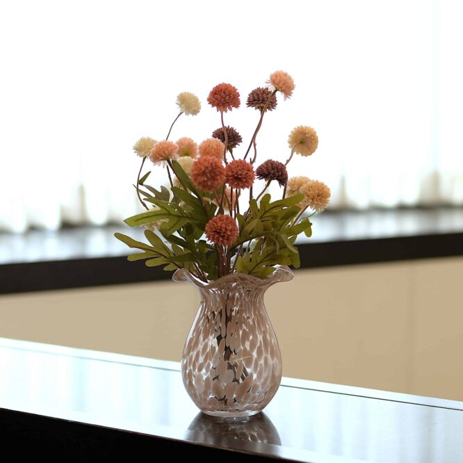 • Whimsical & Modern: The spherical shape of the blooms provides a geometric contrast to the organic drips of the vase, creating a look that is both trendy and timeless.