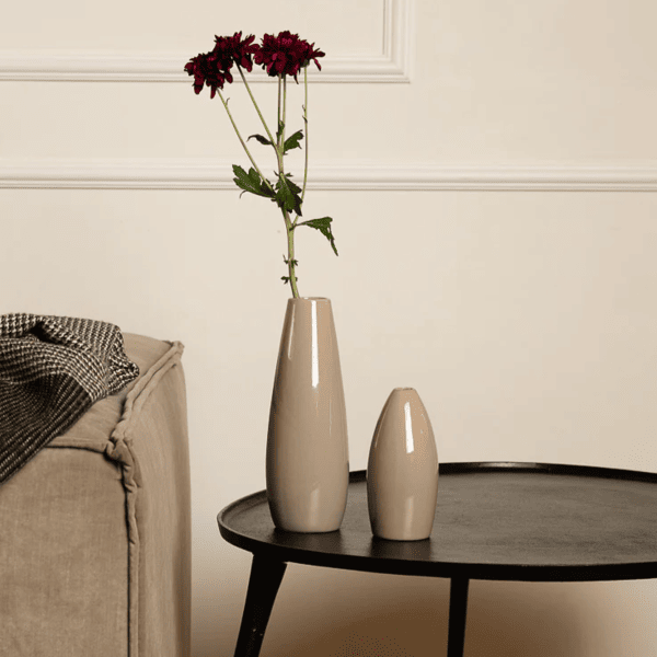 Package includes set of 2 ceramic vases by Casa Bella with a faux flower arrangement.
