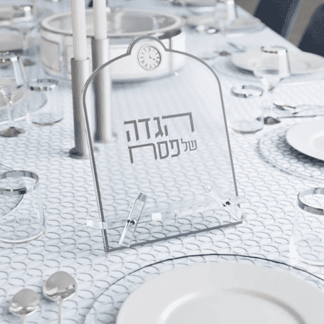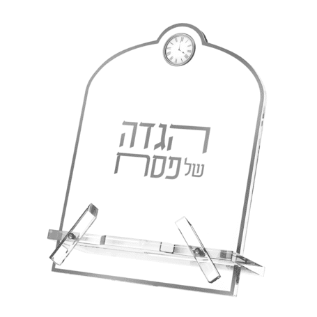 Add an elegant touch to your Seder night with the Classic Haggadah Stand featuring a functional clock to keep track of chatzos. Made from high quality lucite and available in gold or silver, this stand combines practicality and luxury, making it a unique addition to your Pesach table.