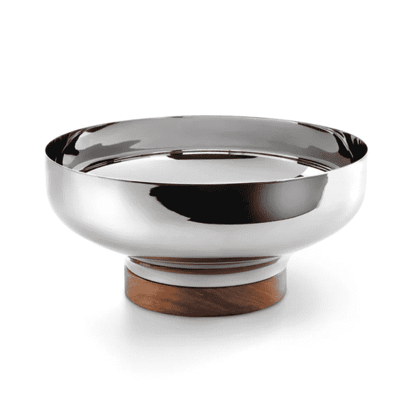 The Limbrey Bright bowls are made from finest 18/10 stainless steel with a mirror-polished finish. The removable wooden bases are made from oiled Walnut and contain a magnet to hold them in place.