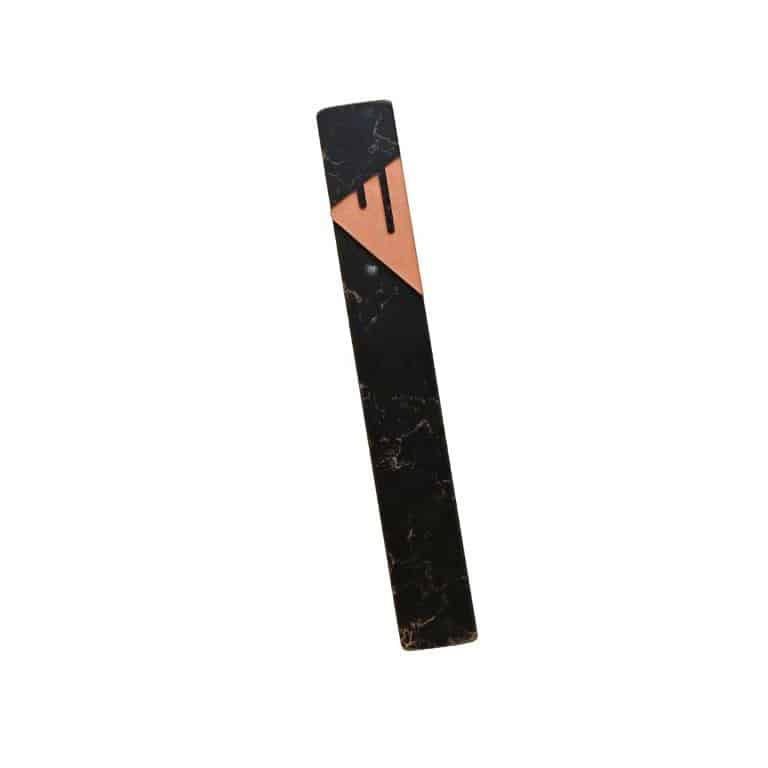 Marble Mezuzah Case, Black with a Rose Gold Shin