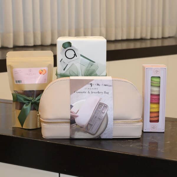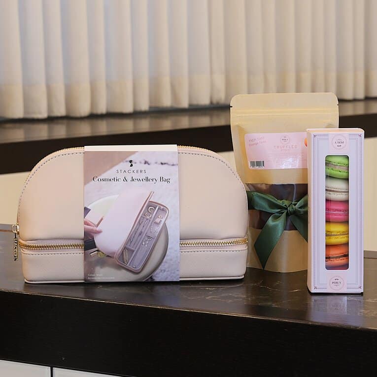 Mishloach Manos | Cosmetic & Jewelry Bag by Stackers, Macaroons & Chocolate Truffles