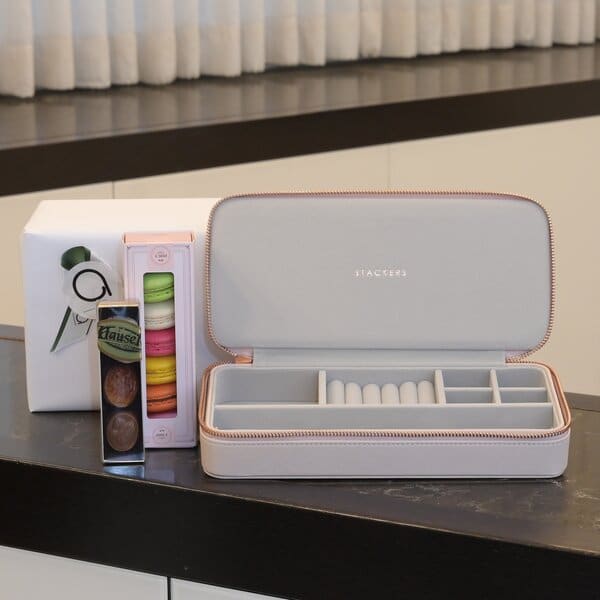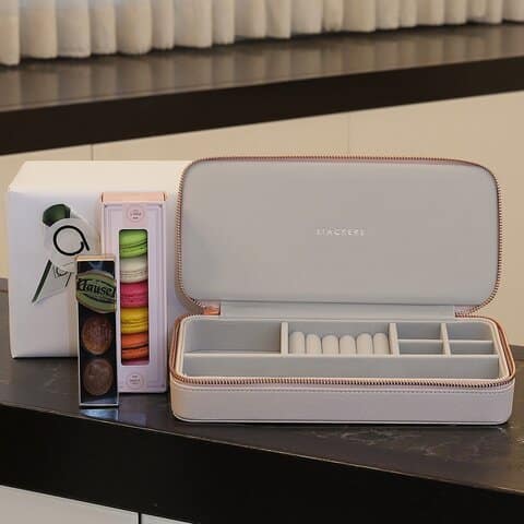 Mishloach Manos for Her | Large Travel Jewelry Box by Stackers, Macaroons & Praline Chocolates