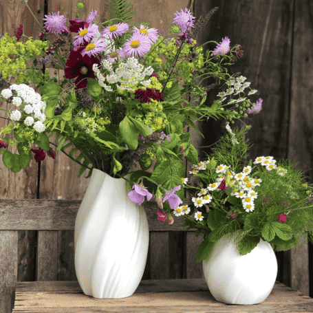 Package includes Cascade vase by Robert Welch with a faux flower arrangement.