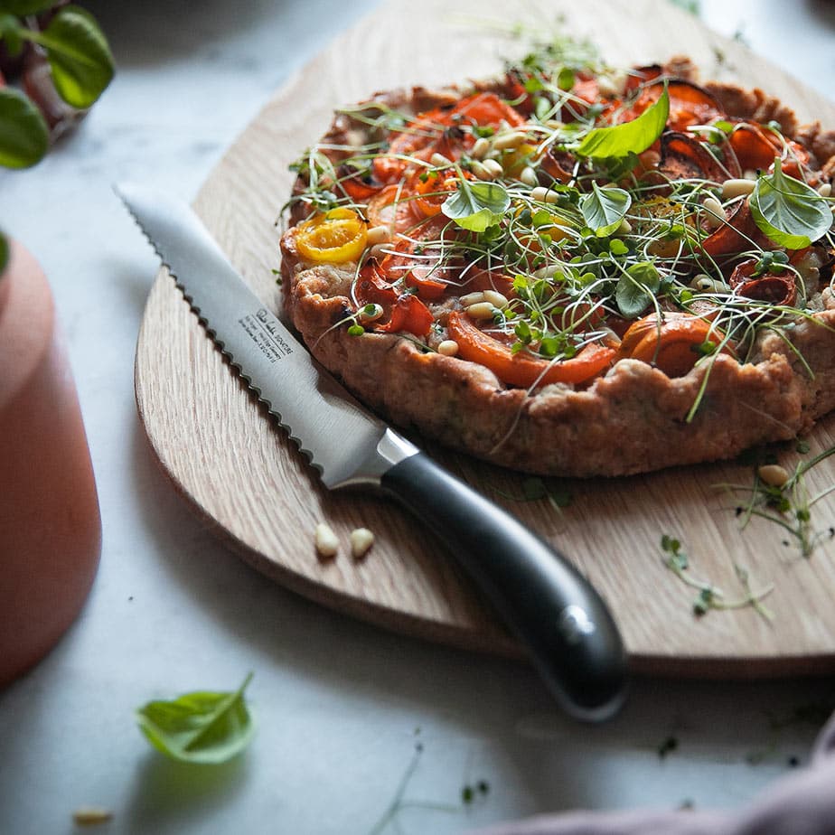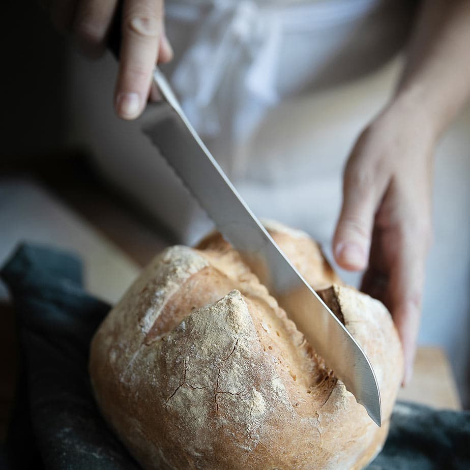 The 22cm serrated bread knife has a scalloped edged blade and pointed tip for effortlessly slicing bread or cutting loaves and cakes. Fully forged from highest quality German stainless steel with an ergonomic DuPont™ handle.